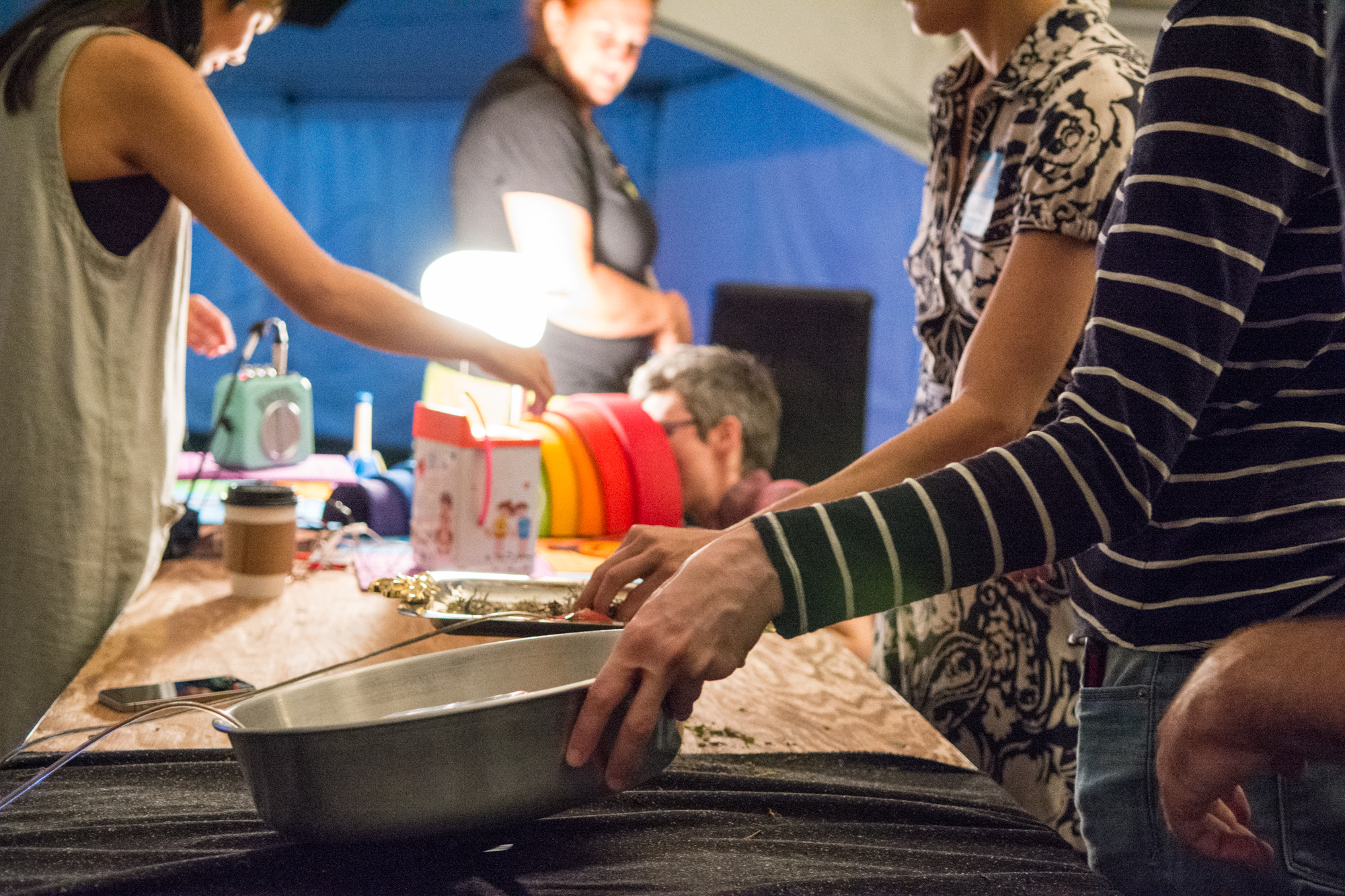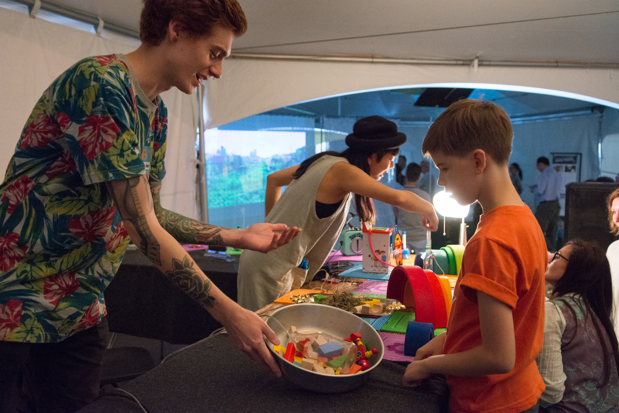 Nathan was one half of the Rainbow Forecast Project’s Play Workshop with fellow artist/educator Alanna Ho in facilitating a family-friendly interactive play workshop for Richmond World Festival’s Digital Carnival 2017: LAND. In this workshop, children and adults alike could freely explore a playground of sound-making items, from toys to everyday household objects, to create their own soundscapes. The items were attached to various generative audio effects via audio and contact microphones to create stunning, surprising, and at times unpredictable sounds for participants.