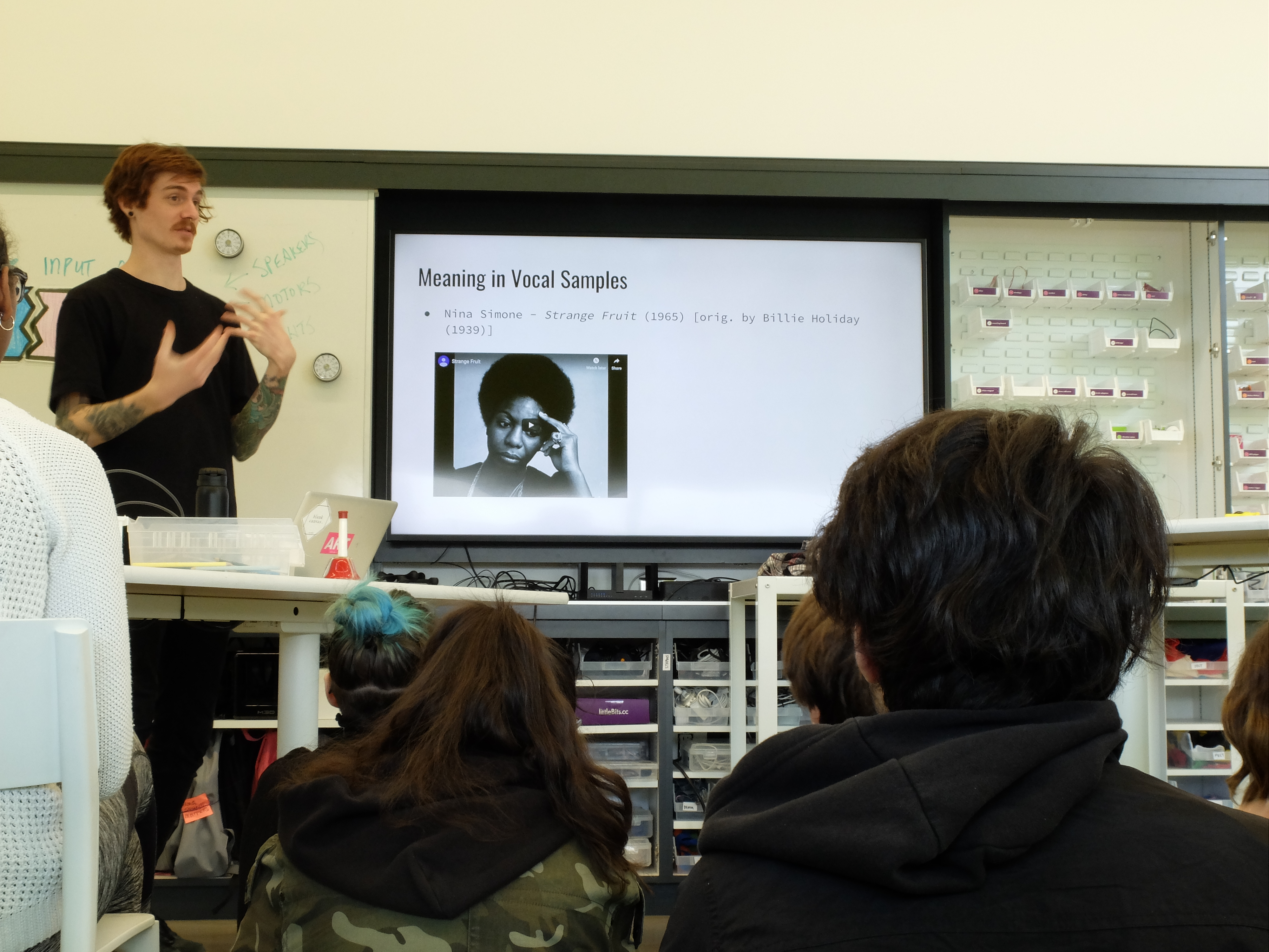 During the 2017-2018 school year, Nathan and fellow Artist Mentor Alanna Ho mentored a select group of students from Burnaby North Secondary School’s Music and Technology Program. This group of talented young artists created a sound installation piece together for exhibition at the Sonic Playground show at the Roundhouse Community Centre as part of BC Youth Week.