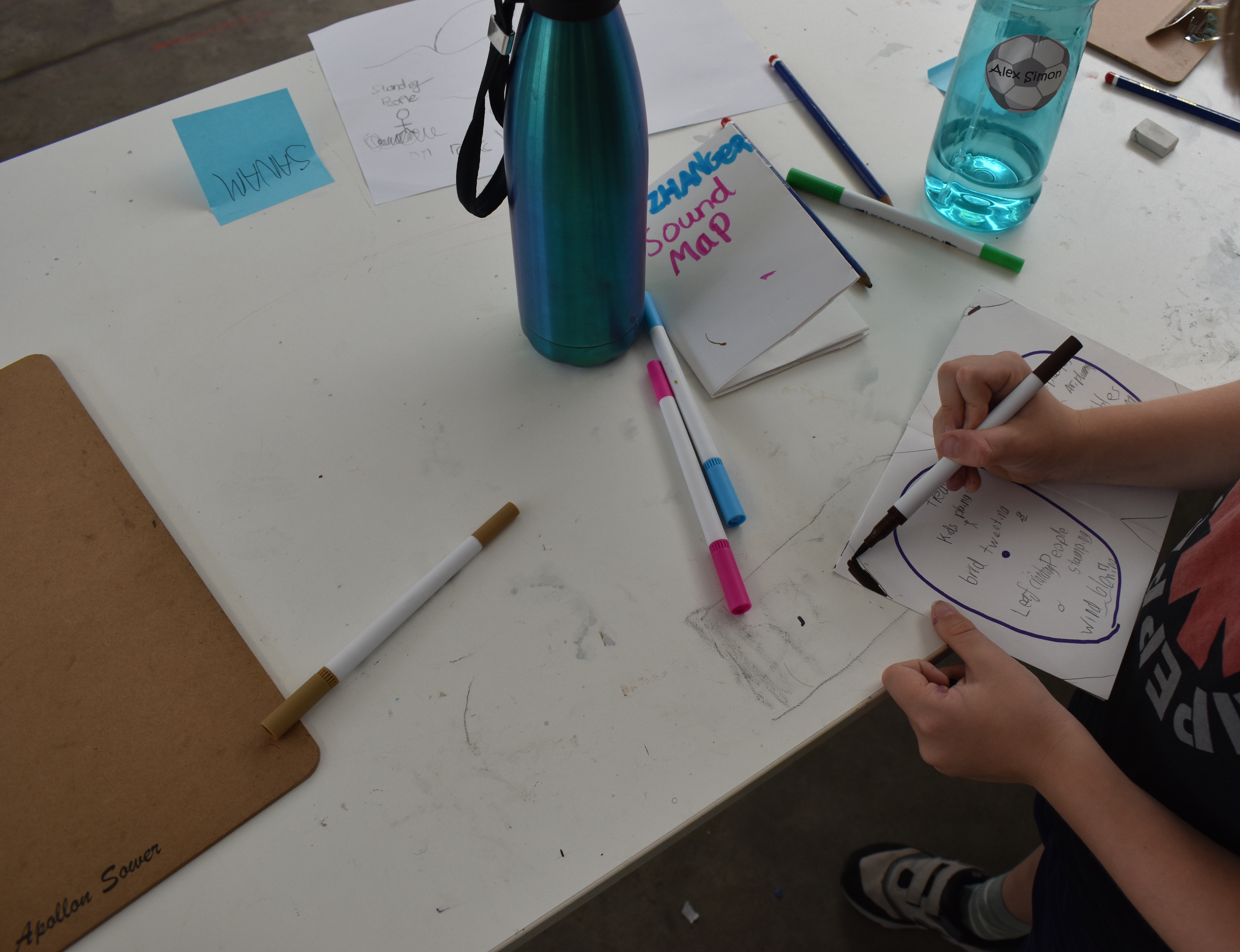 Nathan recently devised and facilitated a sound mapping workshop for children aged 7-11 for Pitzhanger Manor & Gallery’s Creative Summer holiday day camp in August 2022. The workshop involved a guided soundwalk during which the participants would record the sounds that they heard in each location on a specially-made sound map booklet. After this, they decorated their own booklets to take home! We focused on the sounds they hear in their local park and how this informs their sense of community and how they come to understand a place.